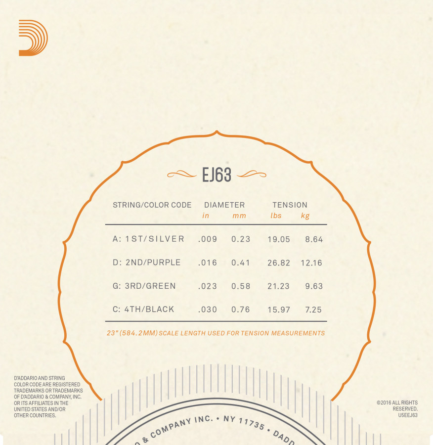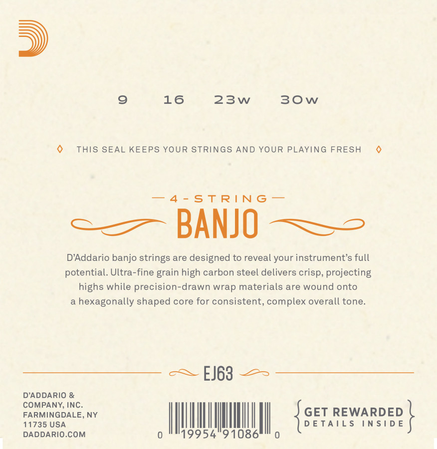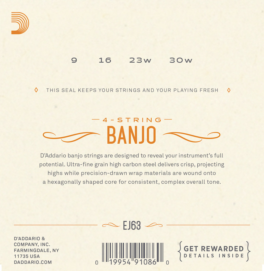 D'Addario EJ63 Tenor Banjo Strings, Nickel, 9-30
