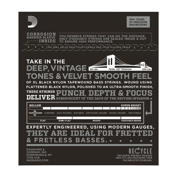 • Engineered to provide optimal tension and gauged to fit properly on standard bass saddles and nuts