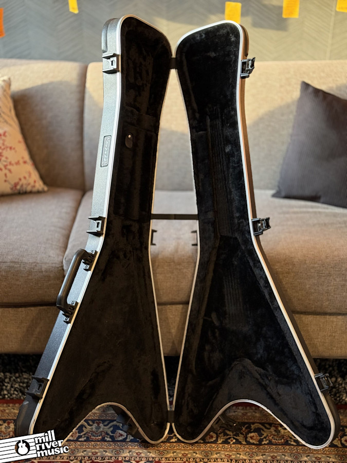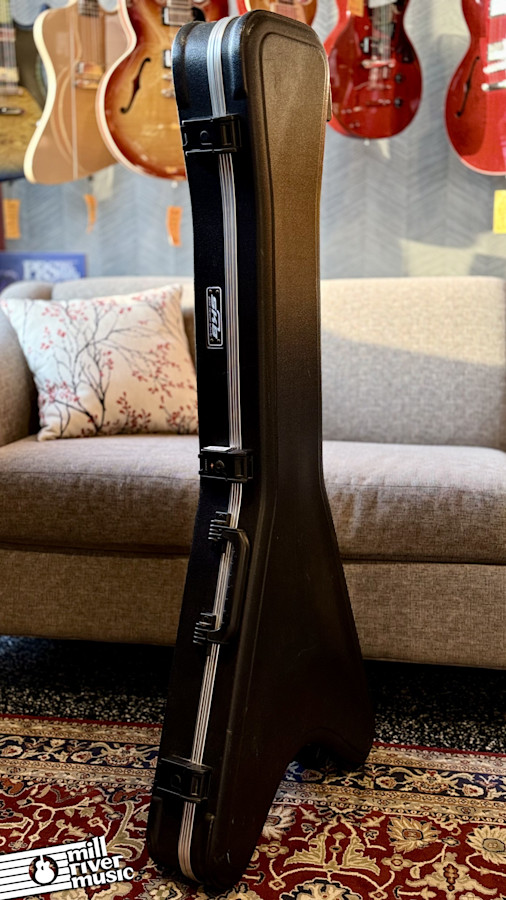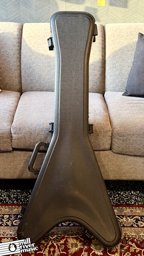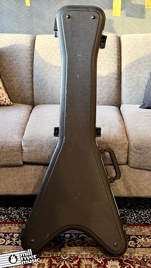 Used SKB hardshell case for Flying V and other V guitars. This item is used in Very Good condition. Has the usual scuffs & bruises, all hinges and latches are fully functional. **No key included. **