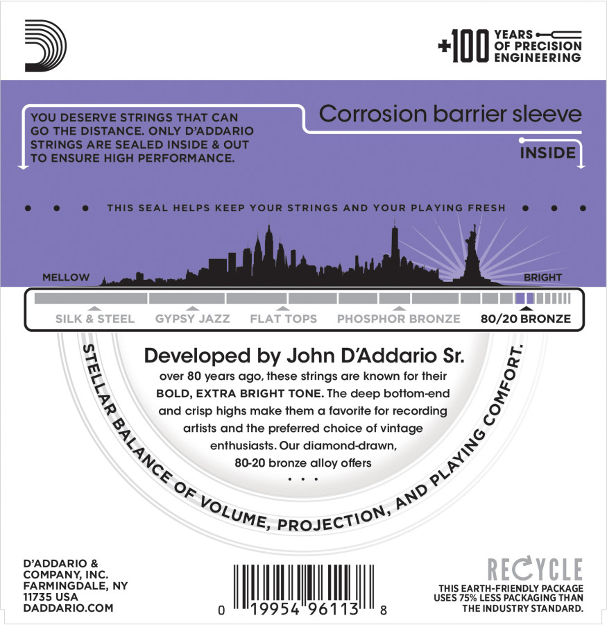 • Environmentally friendly, corrosion resistant packaging for strings that are always fresh