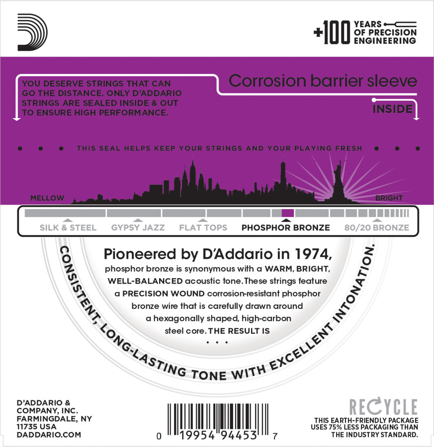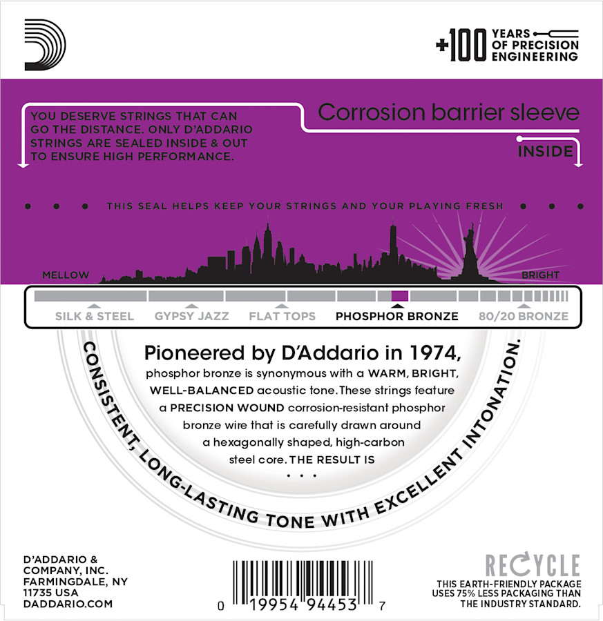 D'Addario EJ38H Phosphor Bronze Acoustic Guitar Strings, High Strung/Nashville