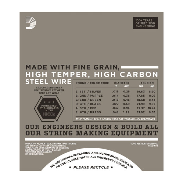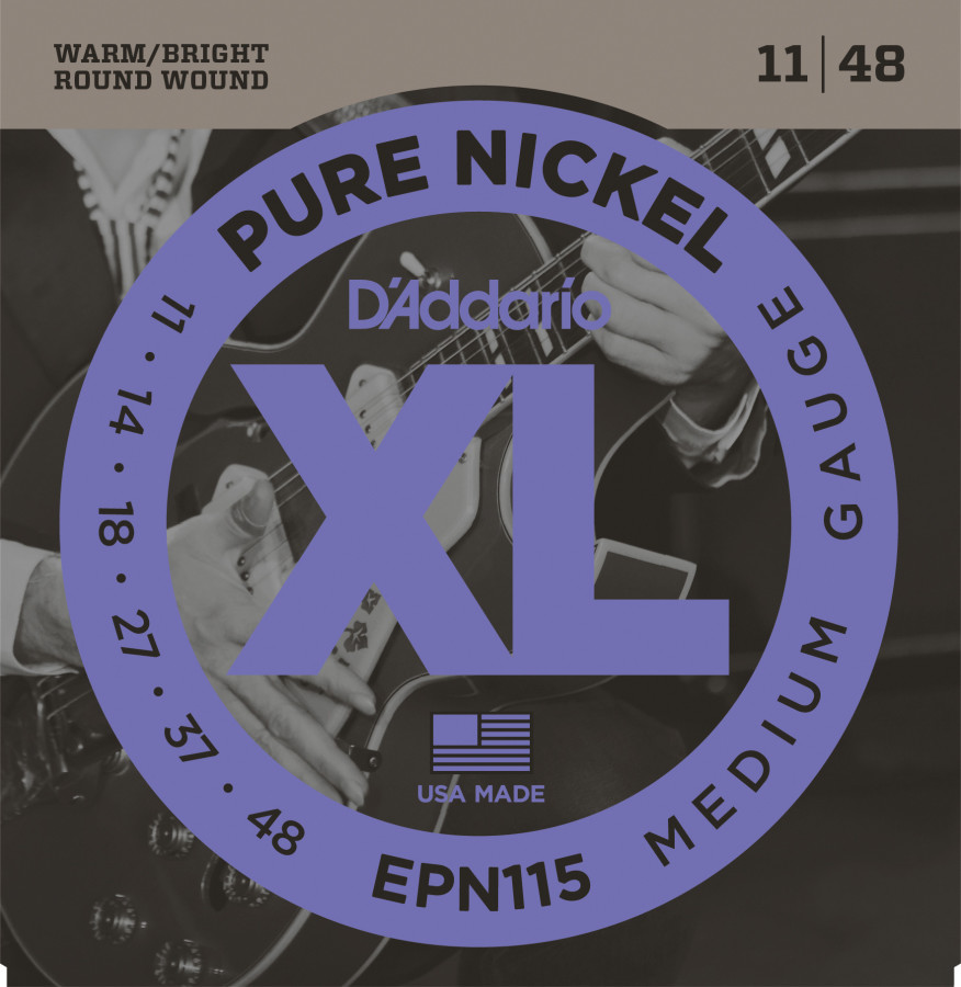 D'Addario EPN115 Pure Nickel Electric Guitar Strings, Blues/Jazz Rock, 11-48