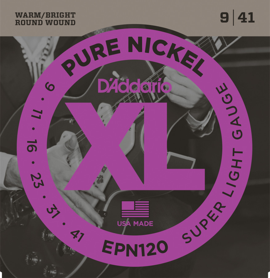 D'Addario EPN120 Pure Nickel Electric Guitar Strings, Super Light, 09-41