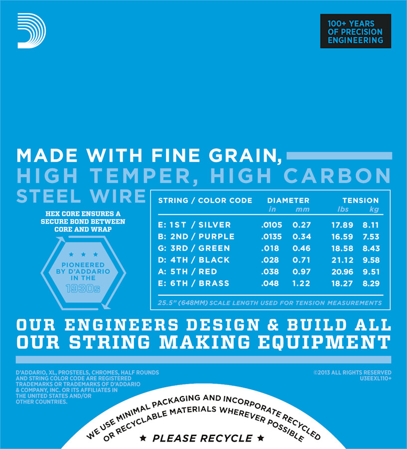 • Environmentally friendly, corrosion resistant packaging for strings that are always fresh