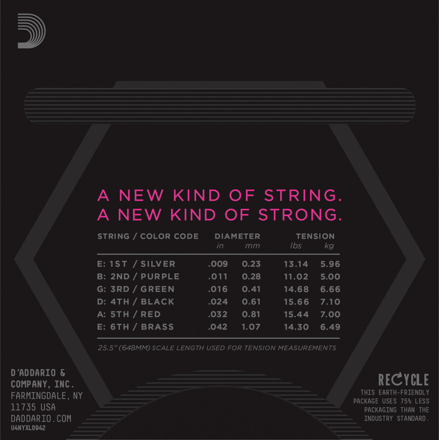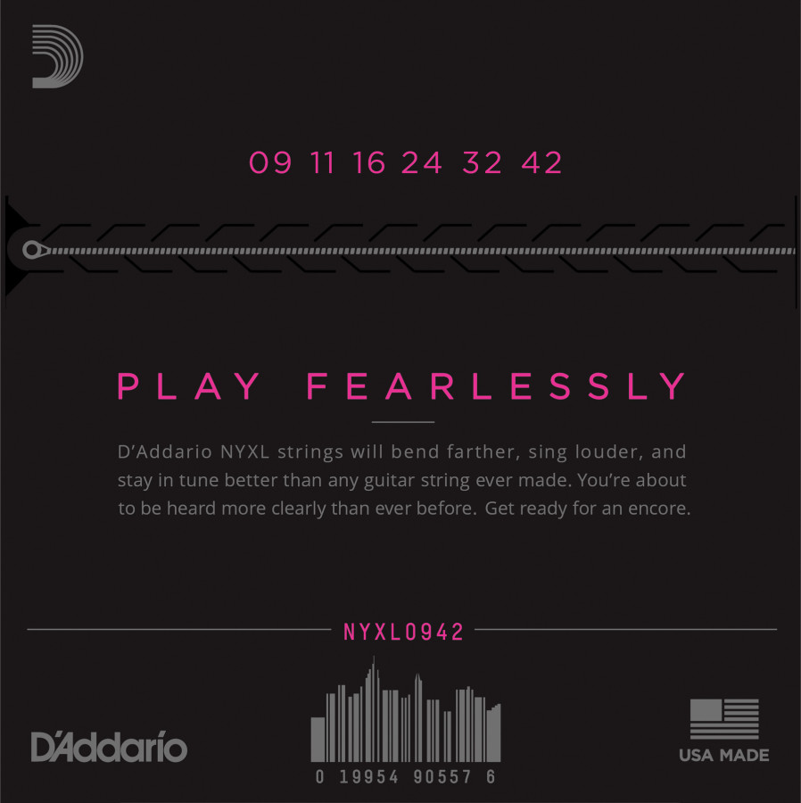 • NYXL0942 are designed with super light gauges for maximum flexibility: Plain Steel .009, .011, .016, Nickel Wound .024, .032, .042