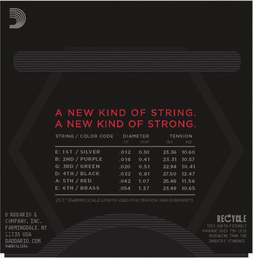 • NYXL1254 with a plain steel 3rd/G string for more flexibility than traditional 12-gauge electric strings: Plain Steel .012, .016 .020, Nickel Wound .032, .042, .054