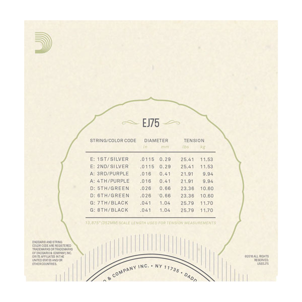 • String Gauges: Plain Steel .0115/.0115, 016/.016, Phosphor Bronze Wound .026/.026, .041/.041