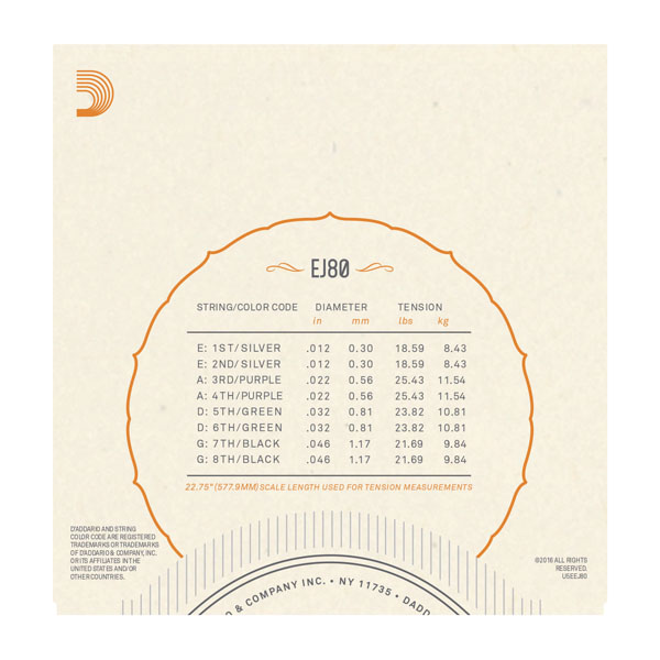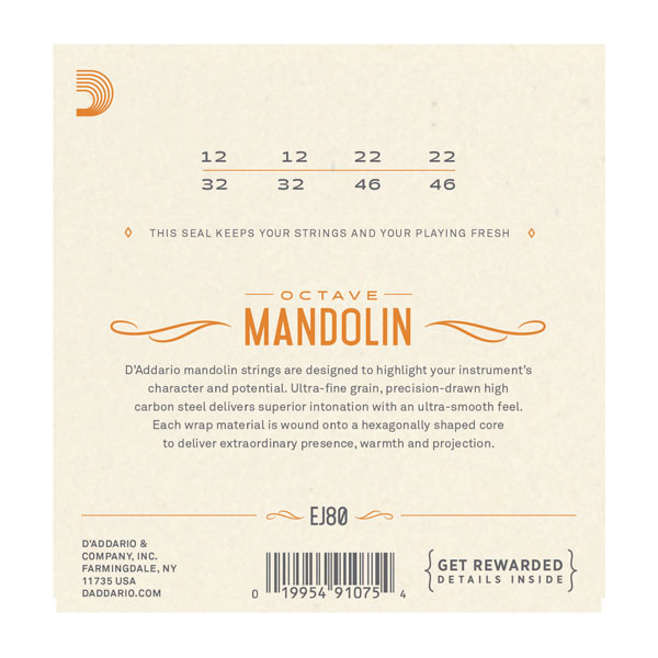 D'Addario EJ80 Phosphor Bronze Octave Mandolin Strings, Medium, 12-46