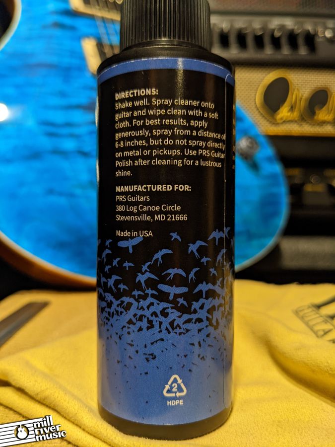 The Paul Reed Smith PRS Guitar Cleaner 4 oz. Nitro FriendlyOur number one recommendation for keeping your glossy guitar clean! Keep a bottle handy as part of your guitar-care kit.From PRS: Keep your PRS in original factory condition with the same non-abrasive cleaner we use. Perfect for removing grime and fingerprints. This cleaner may be used on either nitro or standard PRS finishes.