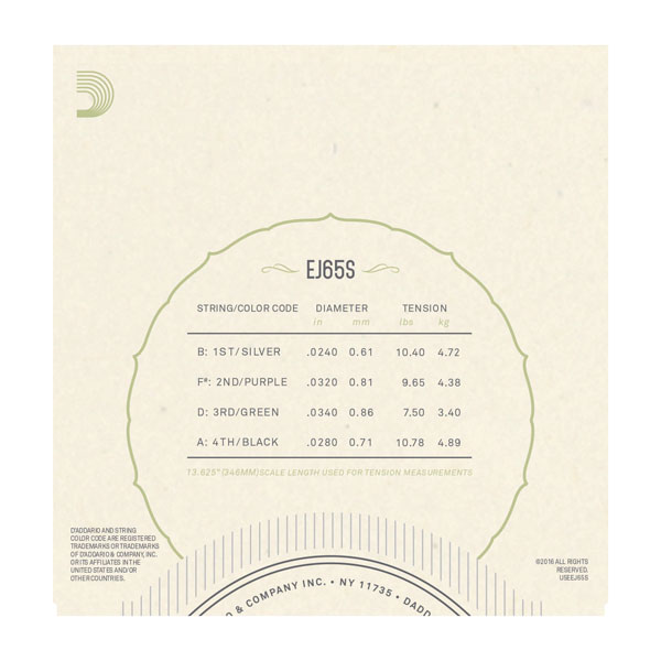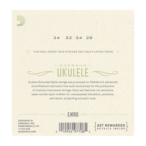 D'Addario EJ65S Pro-Arté Custom Extruded Nylon Ukulele Strings, Soprano