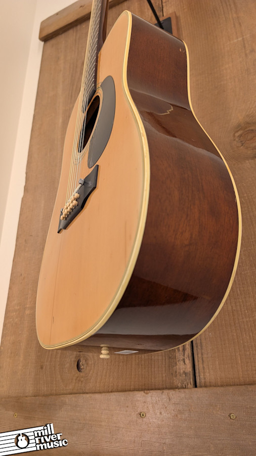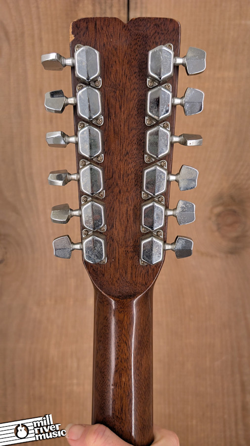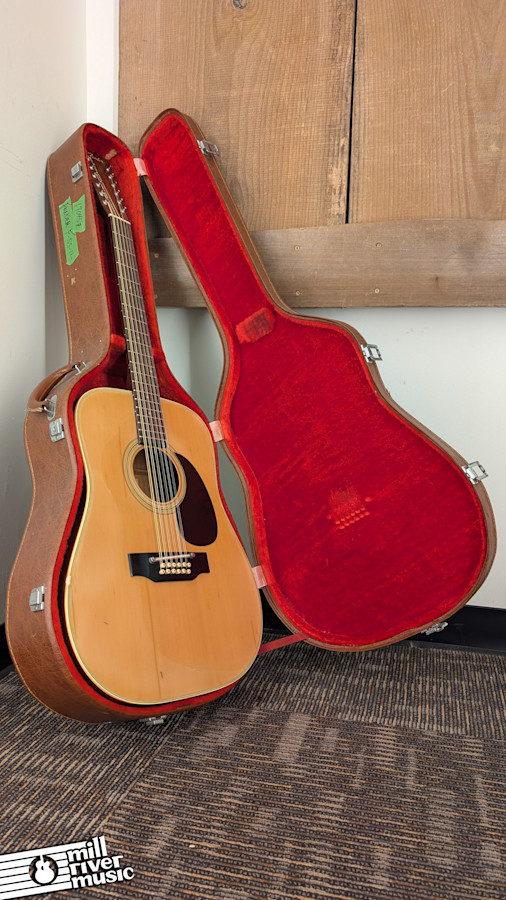Cosmetically, the guitar shows its age with various dings, finish cracking, and areas of cloudiness in the finish across the body. Please review the photos carefully to see these "as-is" details. Despite the cosmetic wear and higher action, it still possesses that classic, jangly 12-string chime. It includes a hardshell case for protection.