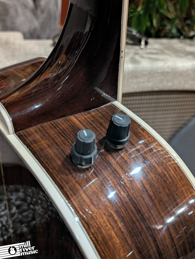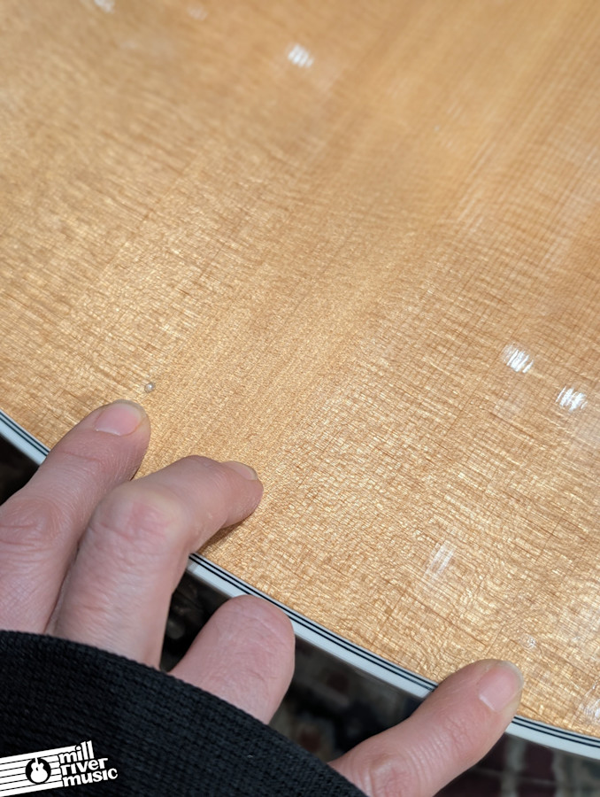 - Condition: Very Good. Minor finish roughness and movement around binding; small area of bellying below bridge; almost no fret wear; professionally set up.
