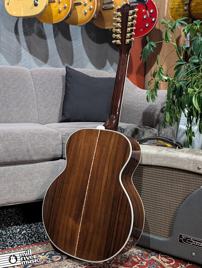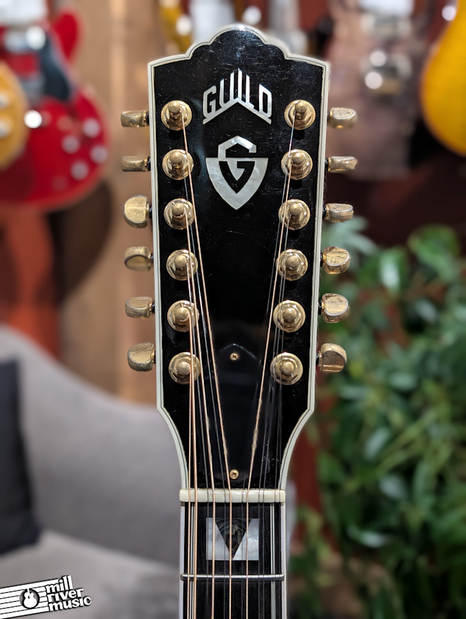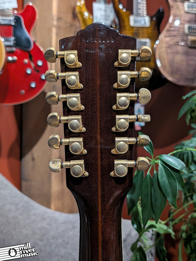 Cosmetically, the guitar presents beautifully overall but shows some signs of shrinking binding here and there with some finish roughness in those areas. We have thoroughly inspected the binding; while there has been some shrinking and movement over time (causing the finish roughness), it is all structurally secure. With almost no fret wear, this is a killer instrument for the serious 12-string player. It includes the original hardshell case.