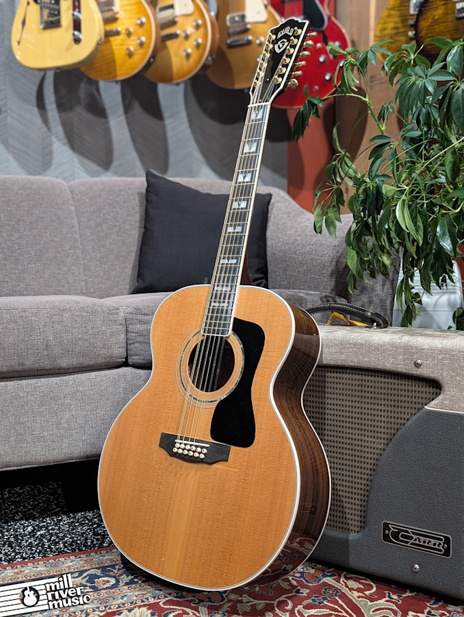 This Guild JF55-12-E NT is a legendary jumbo 12-string, often cited as one of the finest 12-string guitars ever built. Made in the Westerly, RI factory, this model features a massive jumbo body that delivers the iconic Guild "wall of sound." This particular example is rare as it includes a factory-installed pickup system, making it stage-ready.