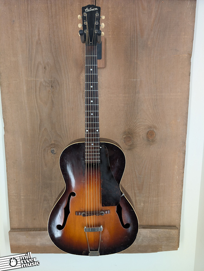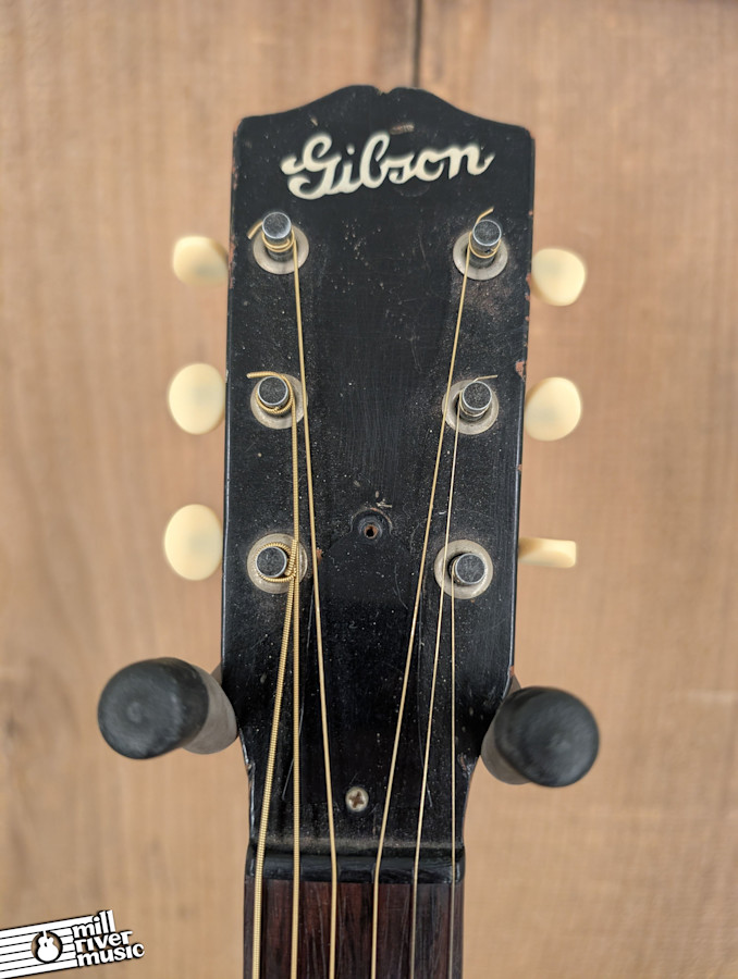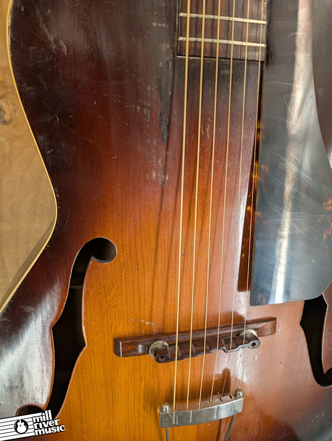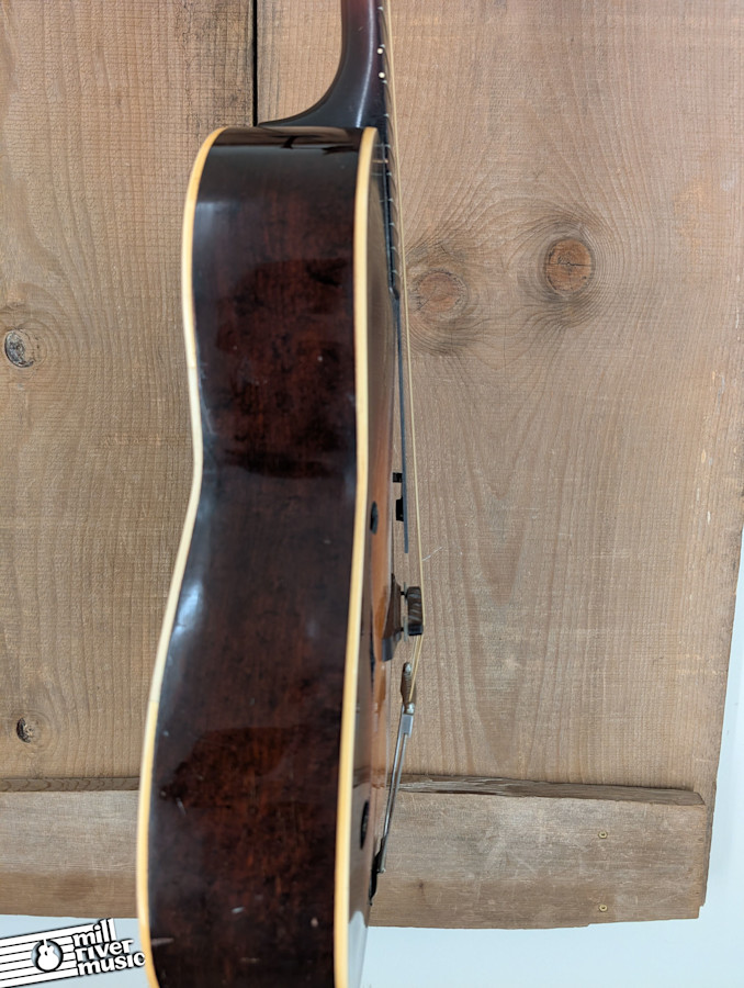 This vintage example is in **Good condition** and has been well-maintained to remain a functional, easy-playing instrument. It is structurally sound with a straight neck and the ideal amount of relief. As is common for these lighter-built pre-war Gibsons, the top exhibits a bit of the typical "archtop dip" or sinking, but it is not significant and does not affect the guitar's stability or playability.