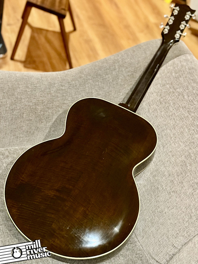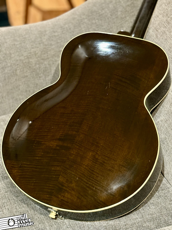The guitar is all original, including the frets, which show moderate wear (primarily along the B & E strings. It shows the expected cosmetic dings, scratches, and bruises of a life well-lived (see pics for detail). The pickguard bracket has been reglued to the underside of the pickguard, but the original hardware is intact. This is a solid, inspiring, and beautiful-sounding pre-war Gibson, ready for its next chapter. It ships in a hardshell case.