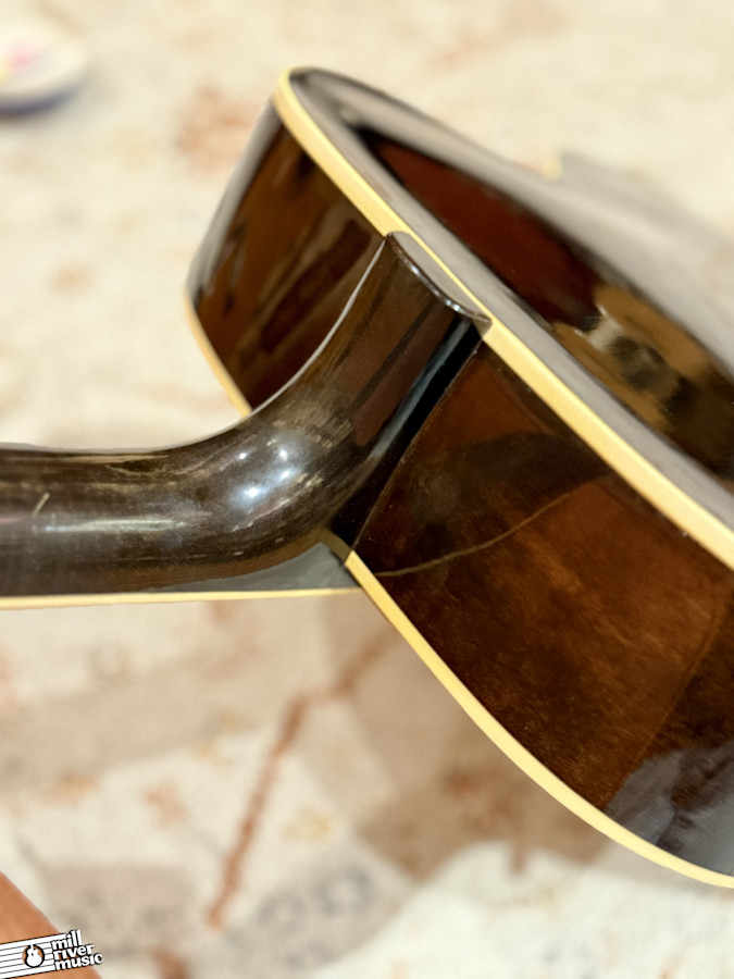- **Condition:** Very Good. Structurally sound. Shows expected cosmetic wear, moderate original fret wear, and a reglued pickguard bracket. Top has some stable, age-appropriate sinking.