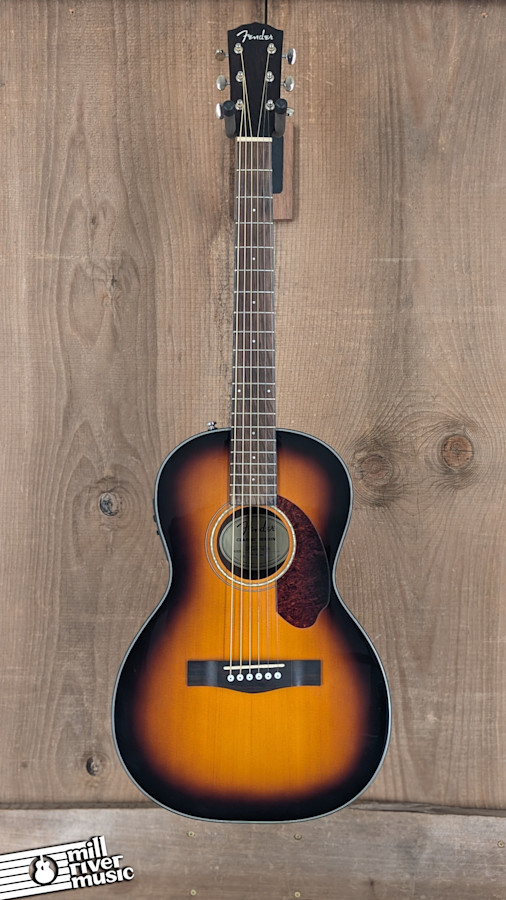 This is a 2017 Fender CP-140se parlor-sized acoustic-electric guitar, finished in a classic sunburst. It is a sweet, enjoyable, and inexpensive little parlor guitar.