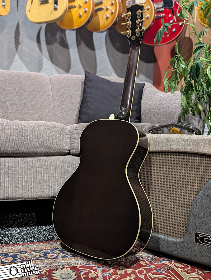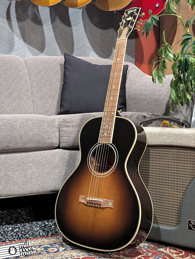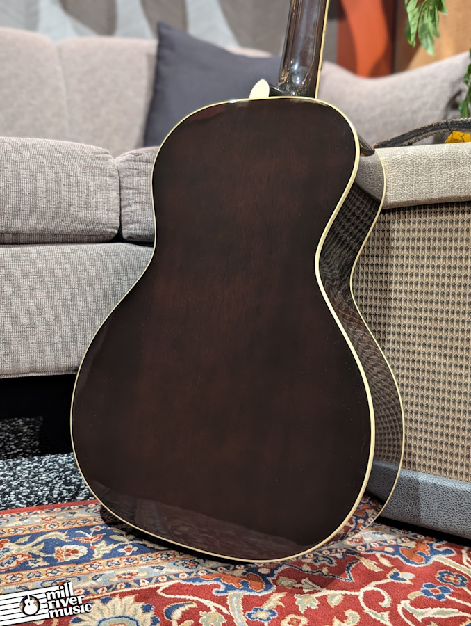 The sound is massive for its size, thanks to the combination of a thermally aged Adirondack spruce top and hide-glue construction. This "baked" top provides the immediate response and warmth of a guitar that has been played for decades. It comes equipped with an LR Baggs VTC pickup system for a natural, transparent amplified tone and includes its original hardshell case.