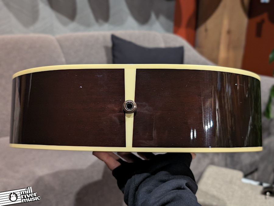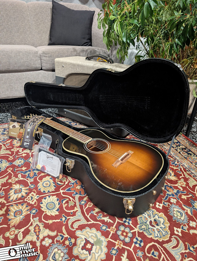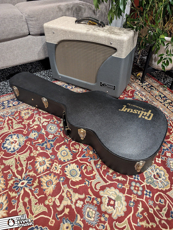 This particular guitar is in very good shape and has been kept in excellent structural condition. While there are some extremely minor finish marks—common for Gibson’s thin nitrocellulose lacquer—they are purely superficial and cannot be felt. It is currently set up with nice low action, making it a dream for fingerstyle players and strummers alike. A major plus for collectors: the original bridge pins, truss rod cover, and case candy are all safely included in the case.