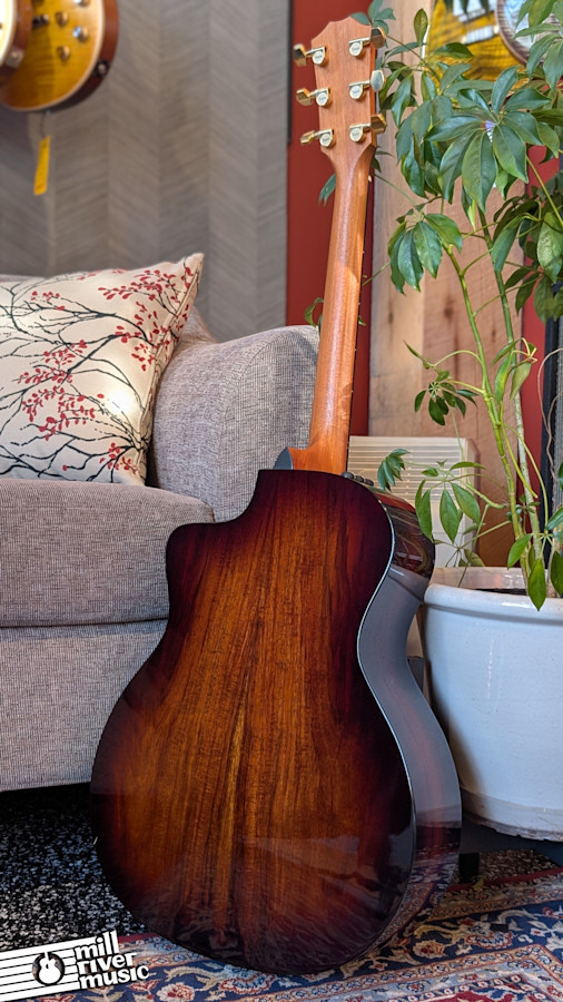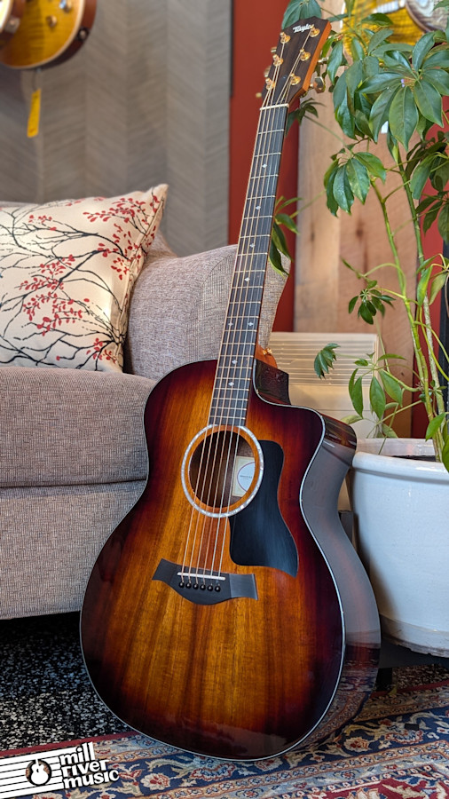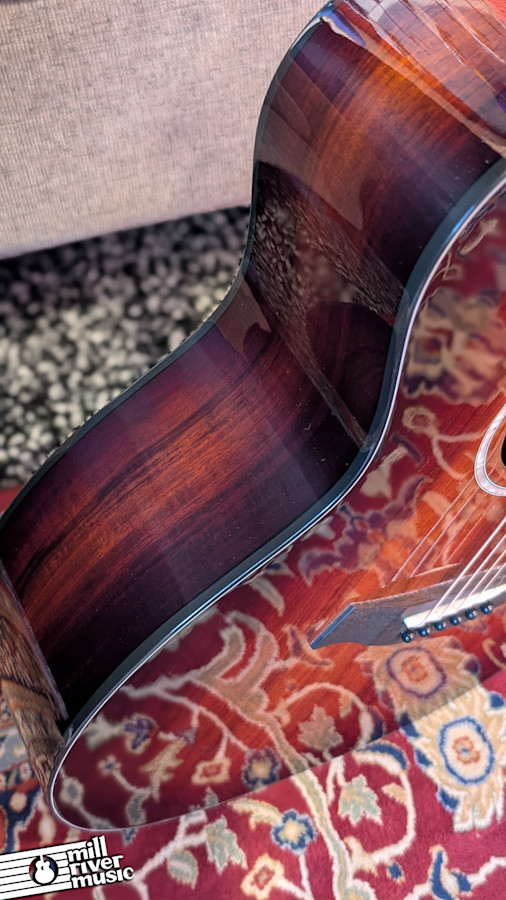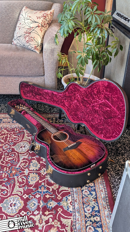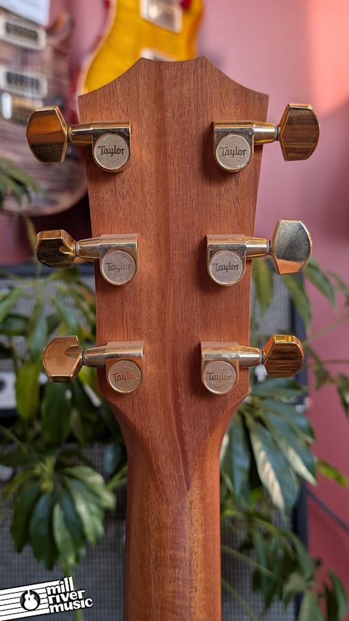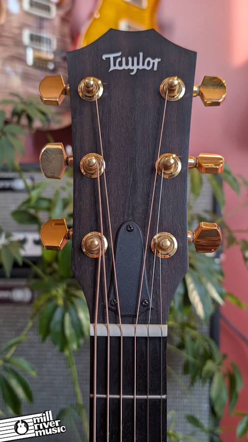 This particular guitar is in excellent shape, showing only very minor signs of handling consistent with light home use. The playability is effortless, with the signature comfortable Taylor neck profile and a professional factory-standard setup. There is extremely minor fret wear on the first couple of frets that does not impact performance or intonation. Aside from a few faint signs of handling here and there, this instrument is in remarkable condition and could easily be mistaken for a brand-new model.