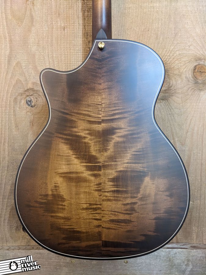 Our Builder’s Edition design concept is guided by our desire to elevate the guitar-playing experience to a new level of refinement in both sound and feel. Inspired by the sonic advances of our V-Class bracing, Taylor design architect Andy Powers has applied his envelope-pushing touches to similarly enhance the playing comfort. With the maple/torrefied spruce Builder’s Edition 614ce, we’ve paired V-Class bracing with player-friendly contouring to create a wonderfully ergonomic feel. Smooth details include a beveled armrest with beveled body edge treatment; a contoured cutaway with a finger bevel for extra fretting ease up the neck; gold Gotoh 510 tuners that sport a luxurious feel and 21:1 gear ratio; and our Silent Satin™ finish, which reduces incidental noise while playing. Tonally, the combination of V-Class bracing, our Grand Auditorium body style, and the maple/torrefied spruce wood pairing together translate into an incredibly responsive guitar. V-Class’s sonic improvements — more volume and sustain, more harmonic agreement between notes, and remarkable consistency in the fullness of notes everywhere on the fretboard — give maple’s sonic transparency a remarkably player-reflective character, allowing the guitar to sound warm, bright or whatever the player decides to bring to it. The touch sensitivity is enhanced by our proprietary roasting process for the torrefied Sitka spruce top, which lowers the damping effect and delivers a more played-in tone. Striking aesthetic details include a new Wild Honey Burst on the top, back, sides and neck, our mother-of-pearl Sceptor fretboard/peghead inlay, and inset maple/black body purfling with matching rosette. The guitar comes equipped with our ES2 electronics and ships in a deluxe hardshell case.