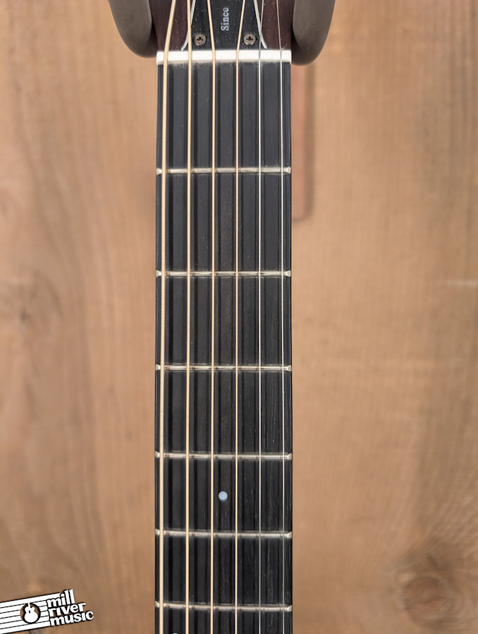 This specific unit (Serial/ID: 190584) is in **Excellent condition** and looks almost new. While there is minor fret wear on the first couple of frets, it is purely cosmetic and does not impact playability or intonation. The matte finish and classic V-shaped headstock give it a timeless look, while the **Atmosfeel™ 3-way pickup system** provides one of the most natural plugged-in sounds on the market today by blending an undersaddle piezo, a contact sensor, and an internal microphone.