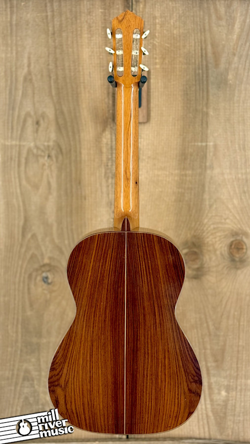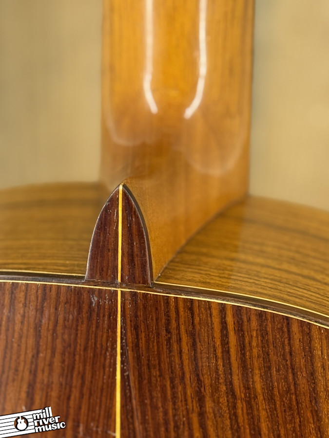 This may not be a signed Velazquez guitar, but it certainly produces the breathtaking sound that earned him his reputation as an equal of Hauser. The German spruce top, which shows a beautiful hint of bearclaw figure near the end block, and the Brazilian rosewood back and sides create an instrument of incredible lightness and resonance, weighing just 1300 grams (2.95 lbs).
