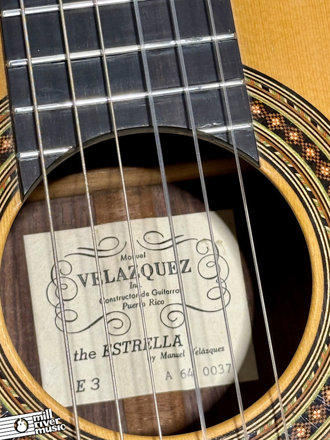 Here is a special and historically significant instrument: a 1964 Estrella E3, numbered "0037". This guitar was made by famed luthier Manuel Velazquez and a team of local artisans during his brief return to Puerto Rico in the early 1960s under a government-funded program. The lore says (though perhaps no one knows for sure) that Velazquez built and voiced the tops himself, while the rest of the instrument was made in concert with the workers in his shop.
