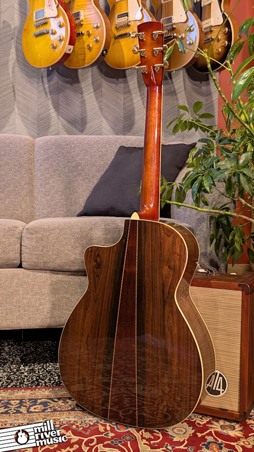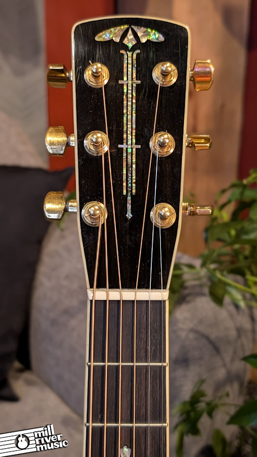 This guitar was custom-built for the original owner and has seen very little play time. It is in Excellent condition and presents as nearly new. It plays beautifully, with great action and plenty of room left on the saddle for future adjustments. This is a top-tier instrument from a master builder, ready to inspire. It includes its original hardshell case, which is in good shape. A few small dings on the back of the headstock. Undersaddle pickup sounds great and functions well.