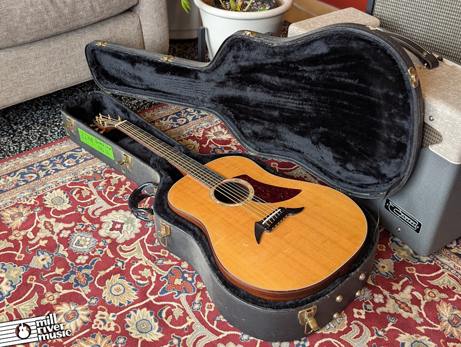 This guitar is in excellent shape for its age. While there are some minor dings on the mahogany neck, the frets show very little wear and the instrument is professionally set up and ready for the stage or studio. It is worth noting that the onboard pickup currently has low output and is considered "tired"—it would likely need service or replacement if you intend to perform plugged-in. The guitar includes its original Breedlove arched hardshell case.