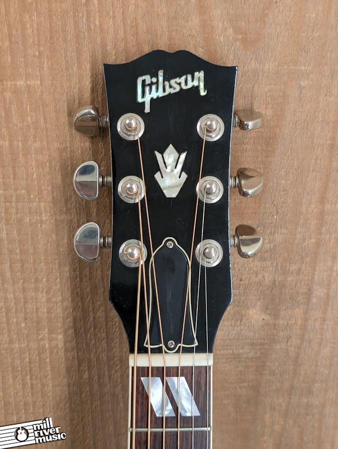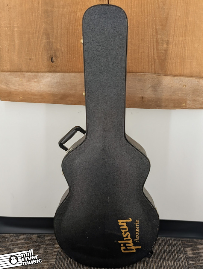 This guitar has been played and loved, giving it a comfortable, broken-in feel. It is in Very Good condition. There is a stable, hairline finish crack on the top behind the bridge; an internal inspection confirms this is superficial and does not go through the wood. The guitar also shows mild to moderate, even fret wear up to the 8th fret, and plays very well. The factory-equipped LR Baggs Element undersaddle pickup and preamp system makes this a versatile, stage-ready instrument. This is a fantastic all-around Gibson acoustic, ready for its next chapter. It includes its original hardshell case.
