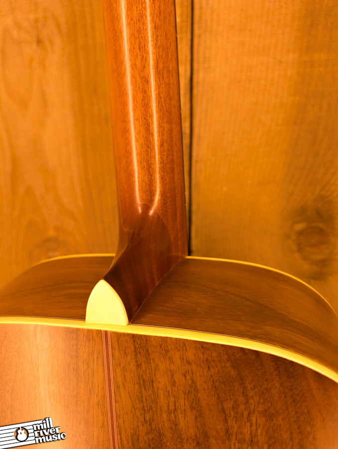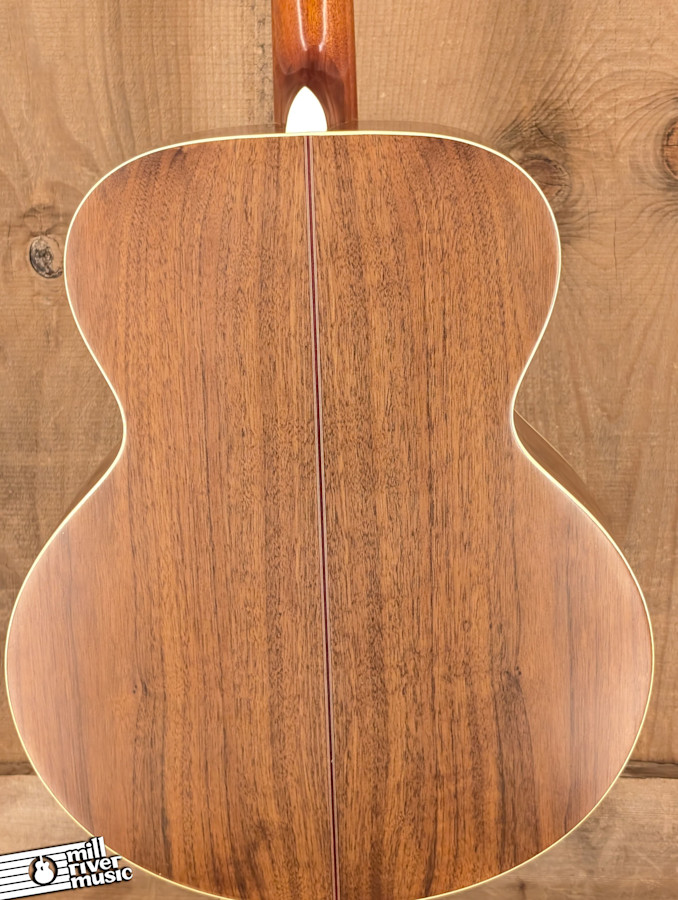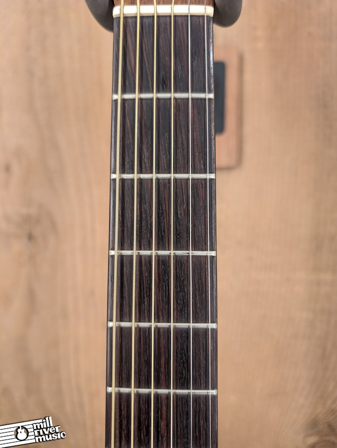 This instrument is in Very Good condition. It shows a few small dings and typical signs of honest play wear consistent with its use, but it remains very structurally sound and visually striking. The rosette and classic jumbo appointments give it a premium look that matches its expansive sound. It plays with smooth, comfortable action across the entire fingerboard.