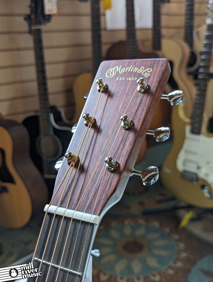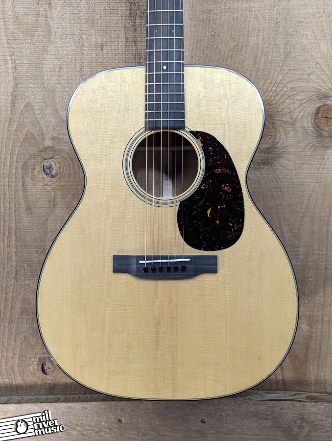 From Martin: Carrying a distinct vintage-inspired design and updated like the D-18 a few years ago, the redesigned 000-18 offers many of the features found in our pre-war era guitars. The 000-18, which has a beautiful aging toned top in spruce, is married with genuine mahogany back and sides. The body is edged with black binding and complemented with a polished finish. The 24.9” short scale model’s neck features a modified low oval profile with Performing Artist taper, with a width of 1-3/4” at the nut and 2-5/32” string spacing for easy playability. Nickel open-geared tuners with butterbean knobs are found with a rosewood headplate, which displays a large old style Martin logo.