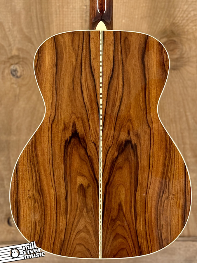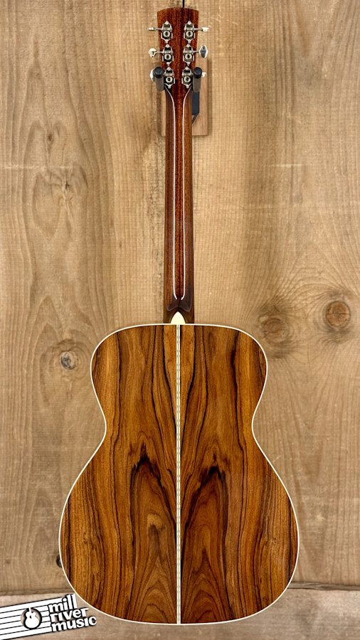 This guitar is in Excellent condition. It has been meticulously cared for and shows very minimal signs of previous use. There is one small ding on the soundboard, smaller than a fingernail, below the bridge on the treble side. The 000 body style provides a balanced, articulate tone that is perfect for fingerstyle players, while still offering plenty of projection for flatpicking. The combination of a solid Sitka Spruce top and Santos Rosewood back and sides delivers a complex, rich harmonic profile with clear highs and a warm low end.