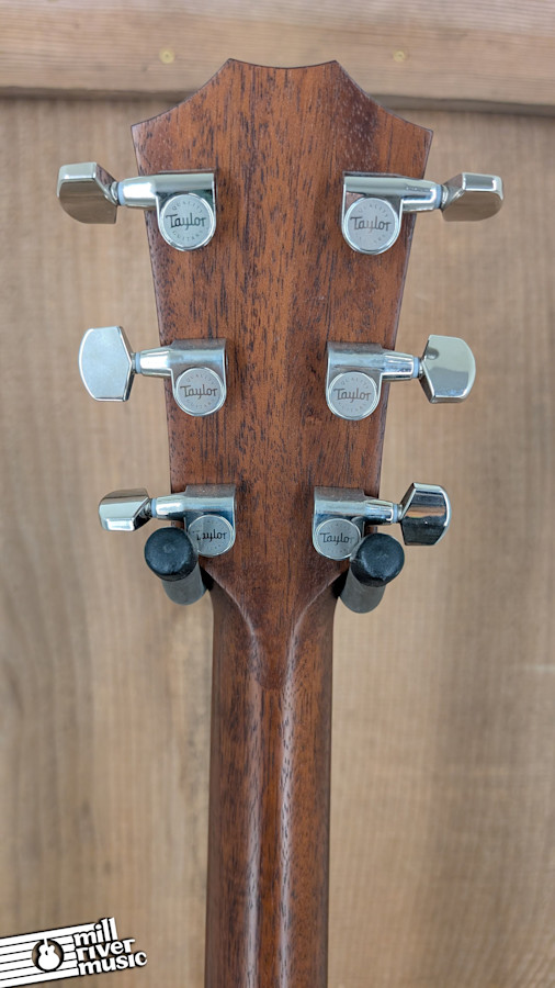 The solid spruce top paired with solid ovangkol back and sides delivers a balanced sound with strong low-end presence, clear mids, and articulate highs. Taylor’s V-Class bracing enhances sustain and intonation while allowing the guitar to open up dynamically under both light and aggressive playing styles.