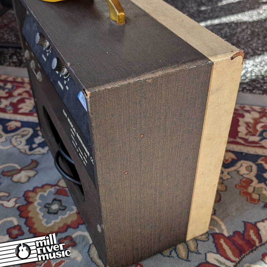 This is a small amp with a lot of attitude! Vintage, from the 60s, with basic controls and three inputs. Sounds good but better when cranked! Not the loudest but definitely a fun one.