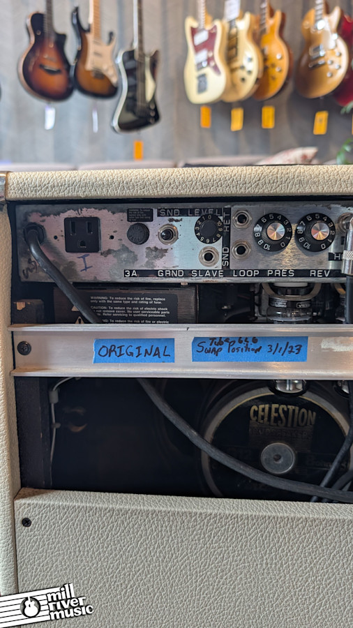 Specifications – Model: Mark I Reissue – Year: Circa 1993 – Chassis Number: H001558 – Configuration: 1x12 Combo – Speaker: Celestion Custom 90 (12") – Output Power: 100 Watts (Switchable to 60W) – Power Tubes: 4x 6L6 – Features: Tube-Driven Spring Reverb, Tweed Power Mode, Effects Loop – Controls: Volume 1, Volume 2, Master, Treble, Bass, Middle – Condition: Very Good. Professionally tested and fully functional; clean cosmetic condition for its age. – Included: Attached Power Cable.