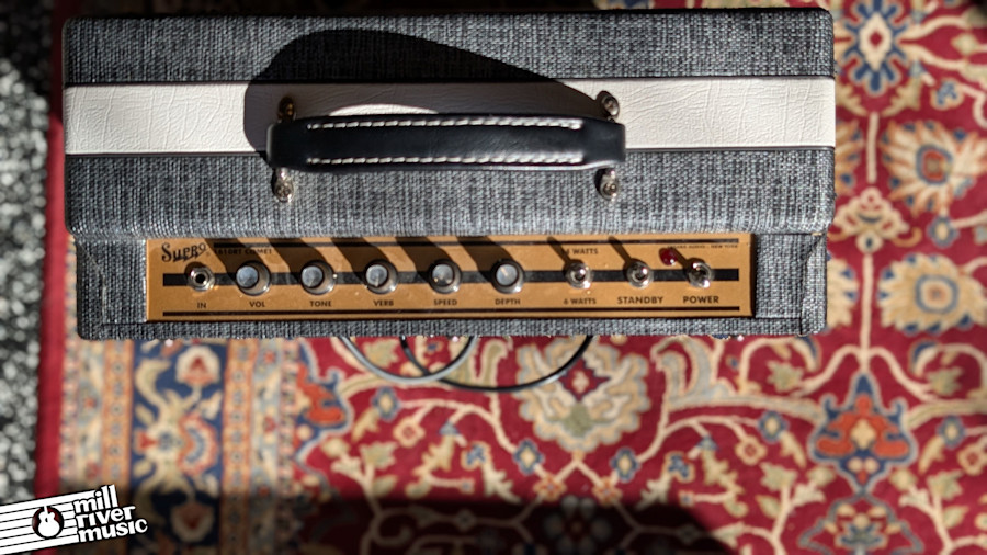 The Supro 1610RT Comet is a boutique-style, hand-built combo amplifier that delivers 14 watts of pure Class-A tube tone. Compact and lightweight, it offers classic Supro chime and grit, paired with onboard reverb and tremolo for lush, atmospheric sounds. Perfect for recording, rehearsals, and small gigs, the Comet is highly responsive to playing dynamics and guitar volume, giving players an expressive and touch-sensitive experience.