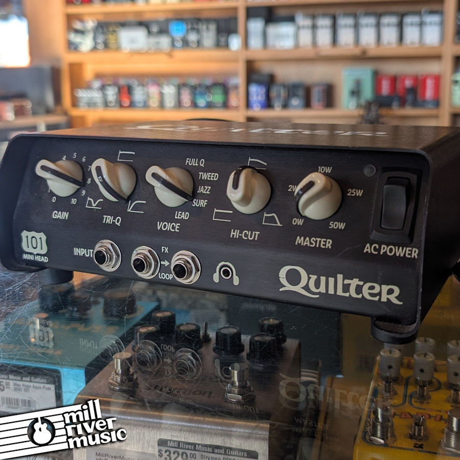 Need a lightweight guitar head that sounds good and gets plenty loud? At barely 2 lbs the Quilter 101 Mini amp head preserves sound quality while keeping everything else compact. It's set up with the traditional Treble/Mid/Bass EQ, Gain, Limiter, Reverb, and an effects loop. It's easy to dial in and can provide just the right amount of power when you need it. This one has been tested and sounds great, and cosmetically very clean.