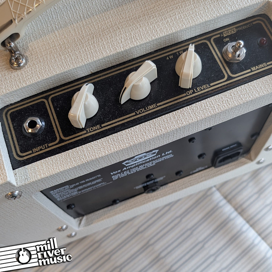 A nice little amp head from Vox, the AC4TVH is an adjustable 4-watt, 1-watt, or 1/4-watt amp head. It's an all-tube head, ensuring quality tone at a controllable volume and small size. It has a 16-Ohm output for flexible cab pairing. Controls include Tone, Volume, and OP Level (for wattage).
