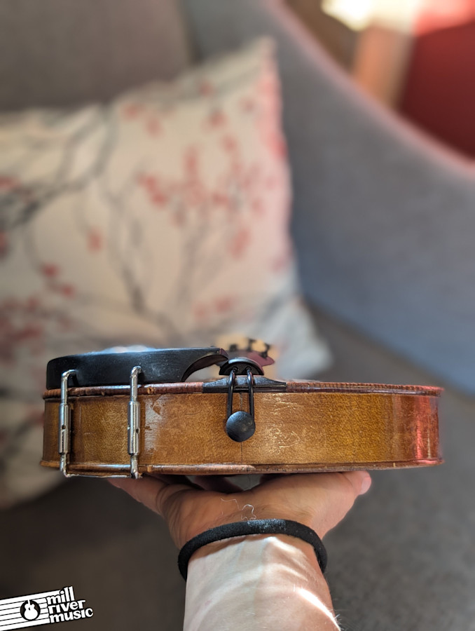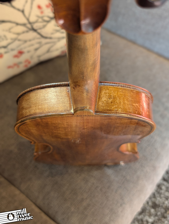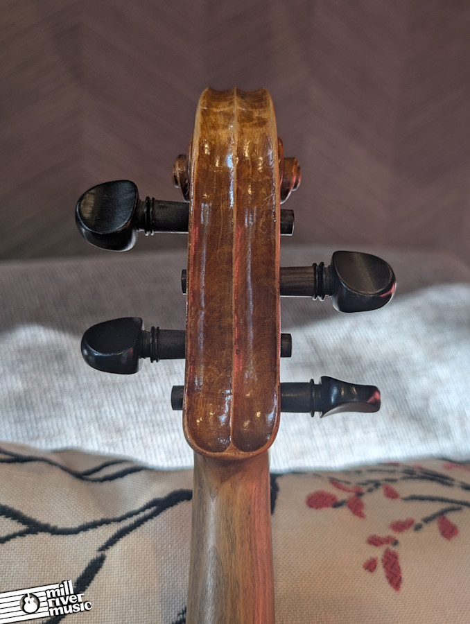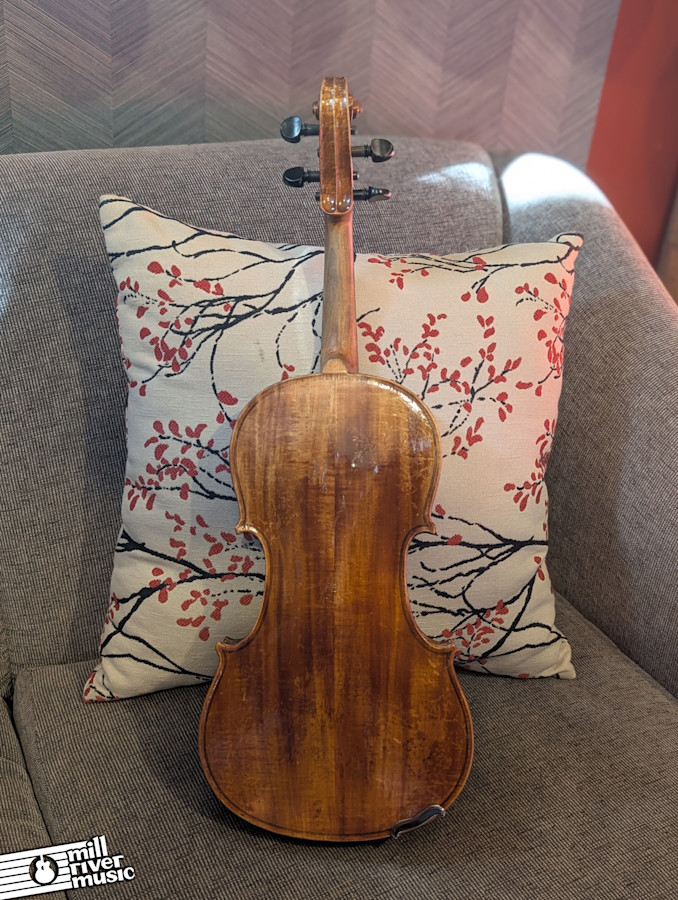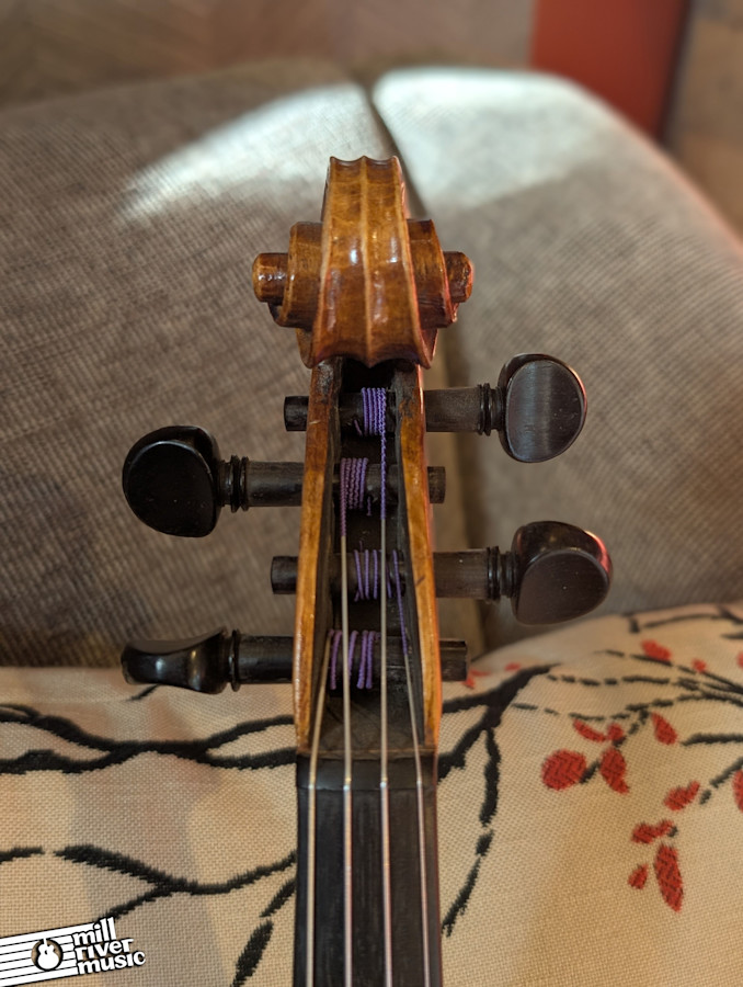 The instrument shows no signs of any past repairs and has been well cared for. It has been set up and is playing very well, ready for its next owner. This complete outfit includes a nice hardshell case and has been upgraded with a carbon fiber bow, which is a significant improvement in durability and performance over standard wood bows. With four fine tuners for easy and accurate tuning, this is a perfect package for a student looking for a reliable and good-sounding instrument.