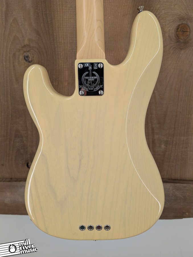 This model is a brilliant hybrid of P-Bass history: it features a gorgeous "Blackguard Blonde" thin-skin lacquer finish and a 1-ply black pickguard that nods to the original 1951 "Tele-bass" aesthetic, but utilizes the contoured Ash body and split-coil pickup configuration of the late '50s. The graphite-reinforced maple neck features a modern "C" profile and a comfortable 9.5" radius, making it a dream to play for the modern bassist.