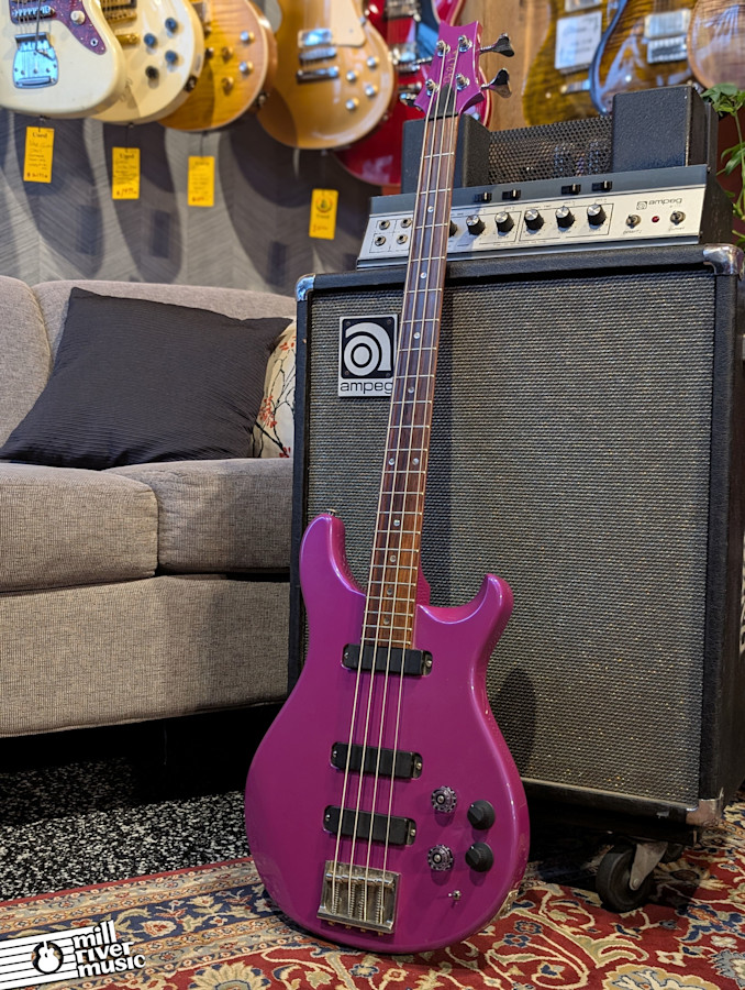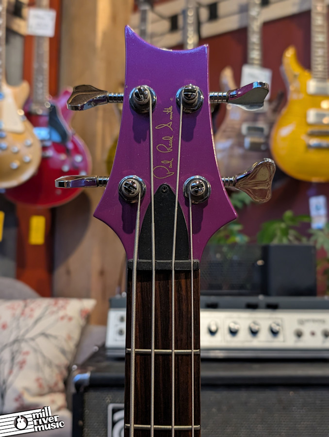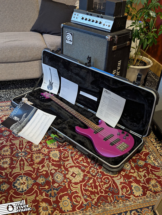 This is an exceptionally rare piece of PRS history: an early Bass 4 Custom dating to the 1986-1987 transition period. According to its pedigree, this is the 142nd bass ever produced by the Virginia Avenue factory. Adding to its provenance is a unique story shared by Paul Reed Smith himself during a signing with the original owner: the custom finish was a prototype based on the nail polish color of his wife at the time. This makes it a true "one-of-one" style collector's item from the dawn of PRS.