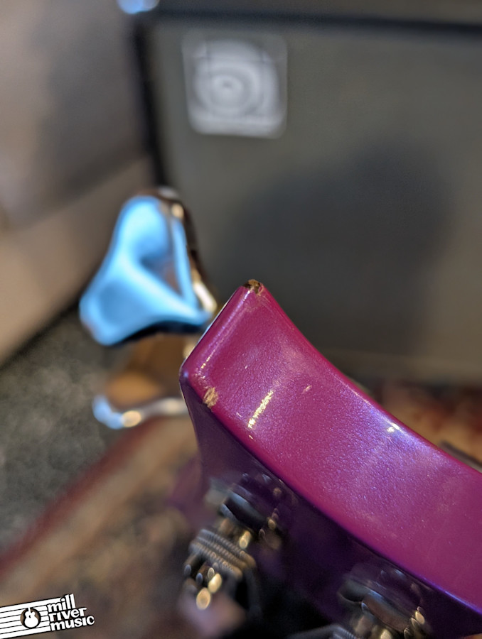 This instrument has been played and loved, showing some honest battle scars and cosmetic wear that tell the story of its 35+ years of service. However, it remains structurally sound and plays fantastically. The action is currently low and comfortable; while the bridge hardware is at its limit for those who prefer "on the frets" action, it is perfectly dialed in for the vast majority of players. It includes a modern SKB TSA-approved hardshell case for maximum protection.