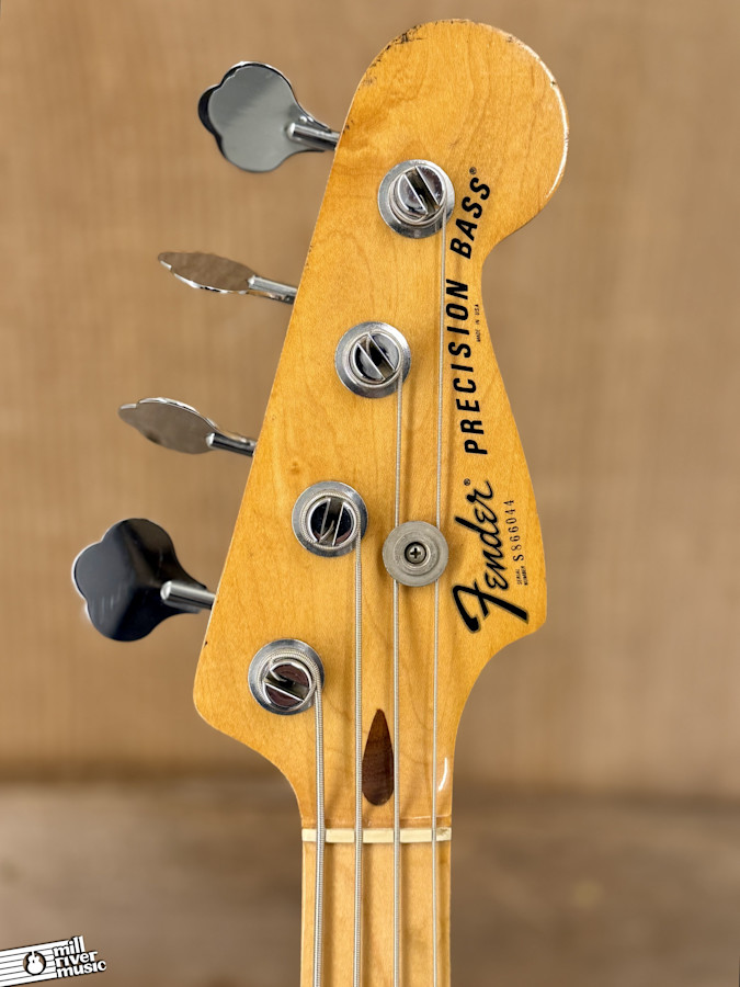 This bass is in Very Good condition and is a true player's instrument. At 10 lbs 12 oz, it sits comfortably in the lighter range for this era of Fender production, often noted for heavier "boat anchor" instruments that could reach 12+ lbs; this one feels substantial but not heavy, and balances well on a strap. The original bridge cover, pickup cover, and thumbrest have been removed (not included), giving it a sleek, ready-to-rock aesthetic.