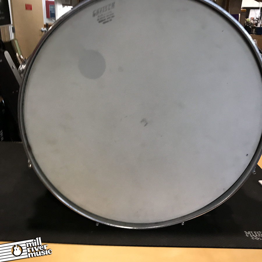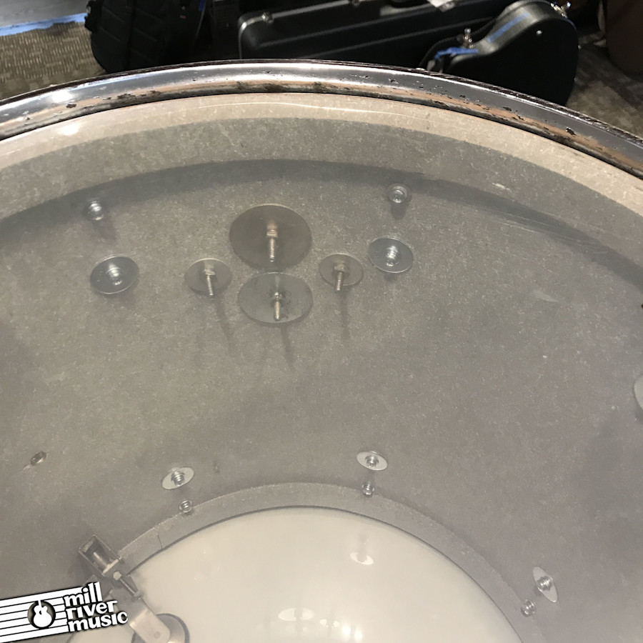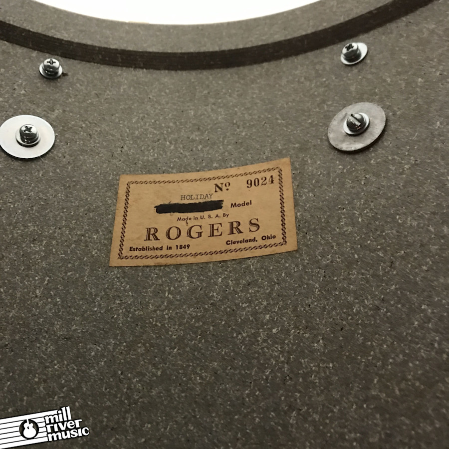 This is a **player-grade drum in very good condition**. The shell is structurally sound with no issues, and the bearing edges are in great shape. There is a glue joint starting to lift on the batter side re-ring. Hardware is all present and working smoothly. There’s some normal wear from use, but it tunes up well and sounds excellent — deep, punchy, and resonant, just as you'd expect from a vintage Rogers floor tom.