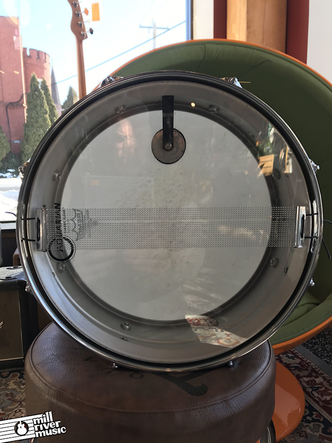 This drum is in **good condition**, with all original hardware intact **except for the heads and snare wires**, which have been replaced. The internal muffler works well, and the **bearing edges are clean and true**, ensuring great tuning stability and crisp sensitivity. Some cosmetic wear is present on the shell and hardware, consistent with its age, but nothing that affects functionality.