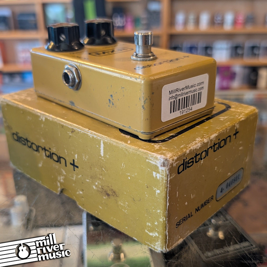 A vintage MXR Distortion + pedal from way back in '78. An oldie but a goody and it still rocks.