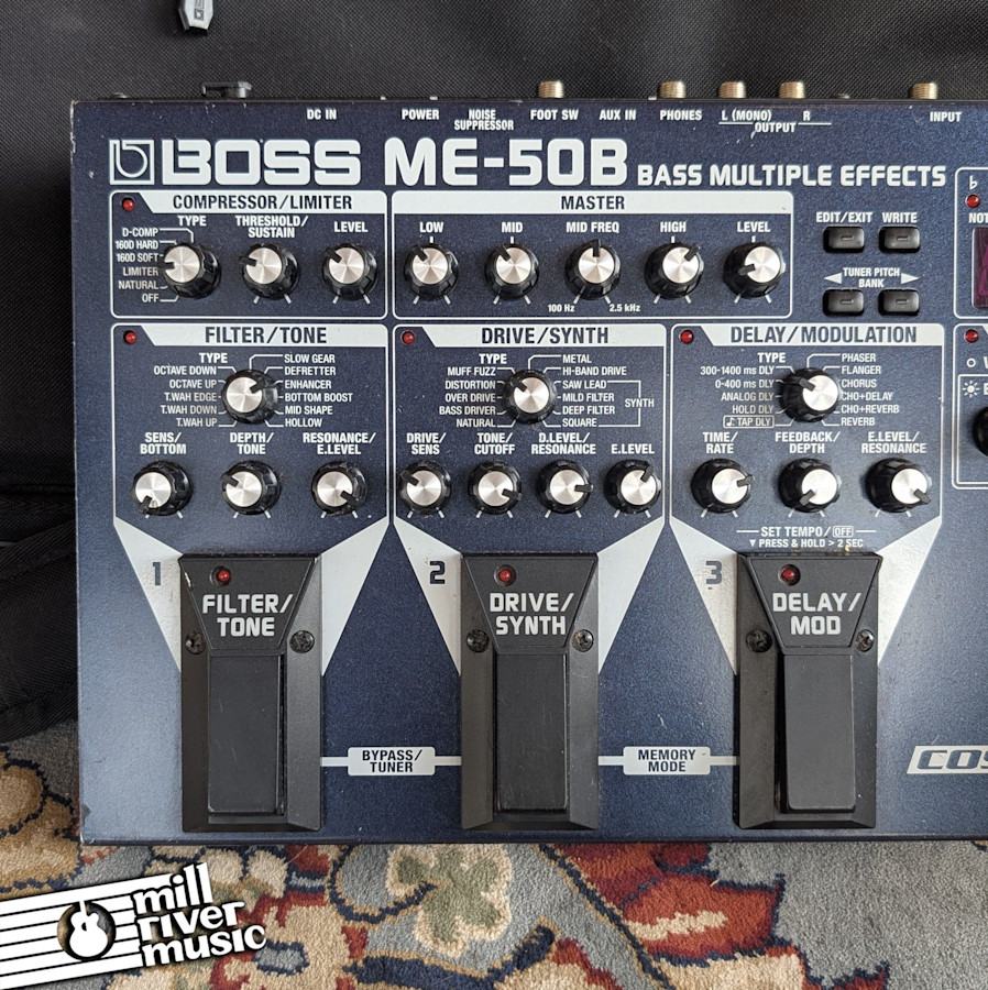 The BOSS ME-50B puts world-class bass effects in a rugged floor unit with easy pedal-style control. Effects are divided into six sections—Compressor/Limiter, Master, Filter/Tone, Drive/Synth, Delay/Modulation and Expression Pedal—giving bassists a range of unique and powerful tones including new effects like Sound Hold, Octave Up and Kick Drum. Effects can be edited using 23 knobs and controlled via three built-in footswitches and an assignable expression pedal. This is the piece no bass player should be without!